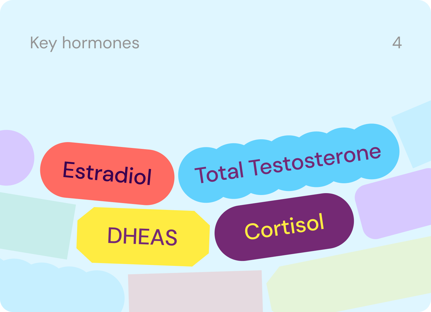 This test checks in on your hormone health by measuring 4 key biomarker levels—so no matter what stage you're at in life, you'll get valuable insights into hormones that affect muscle mass, fat distribution, energy, mood, and more.