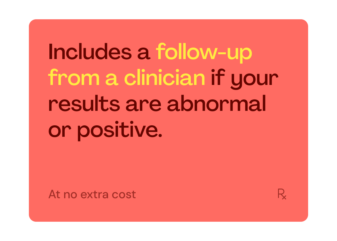 If you receive an abnormal test result, our independent clinician network partner will contact you to schedule a consultation at no additional cost, so you can discuss your results with a board-certified physician in your state. When appropriate, and at the physician’s discretion, you may be offered a prescription for medication.